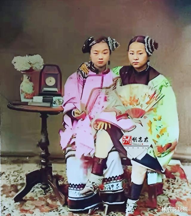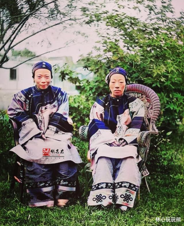 这三位女子,气质出众,像极了三姐妹。有人嫌弃清朝女子的衣服难看,说那衣服前襟开得大,又松又胖。但其实,那时候最正式的裙子,就是马面裙,那可是经典款式呢。