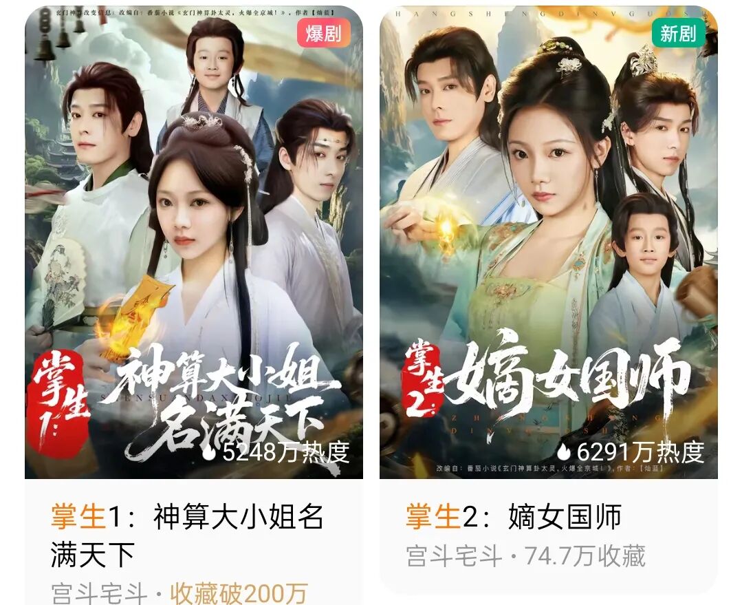 上周排在周榜第4的女频修仙剧《掌生1:神算大小姐名满天下》,本周排名下滑严重,排在周榜第14名。这部剧的系列第二部《掌生2:嫡女国师》日前也已上线,以6291万热度排在今日日榜第九名,热度不差,但还未进入第一梯队。