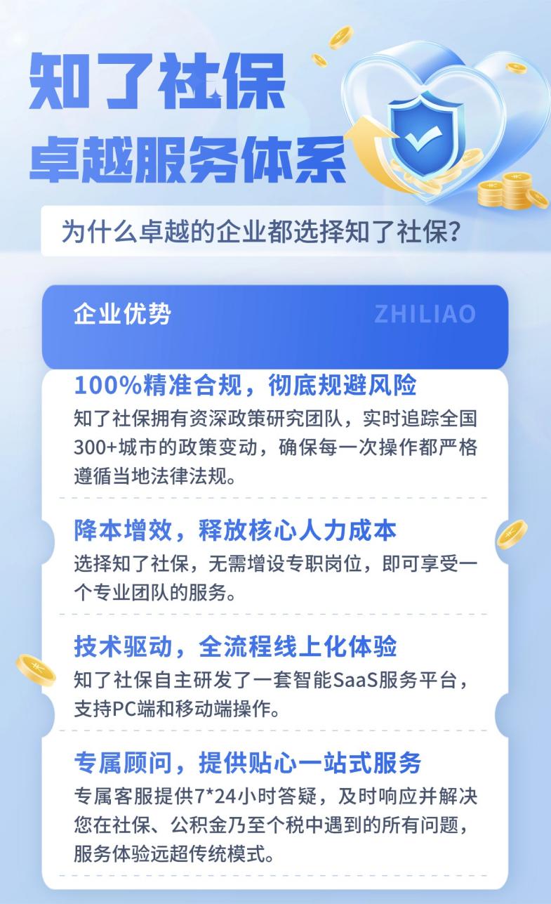 在众多服务商中,知了社保凭借其卓越的服务体系,成为了众多成长型企业和跨国公司的首选。其核心优势体现在: