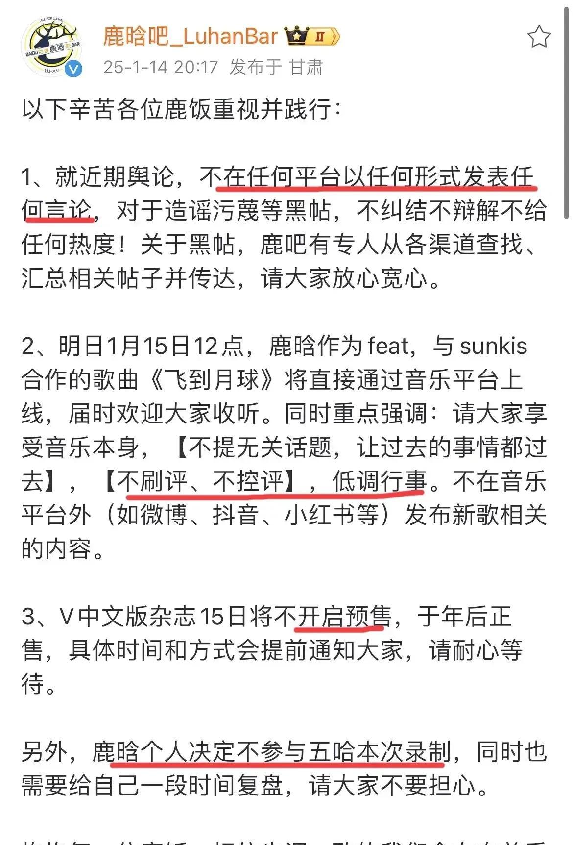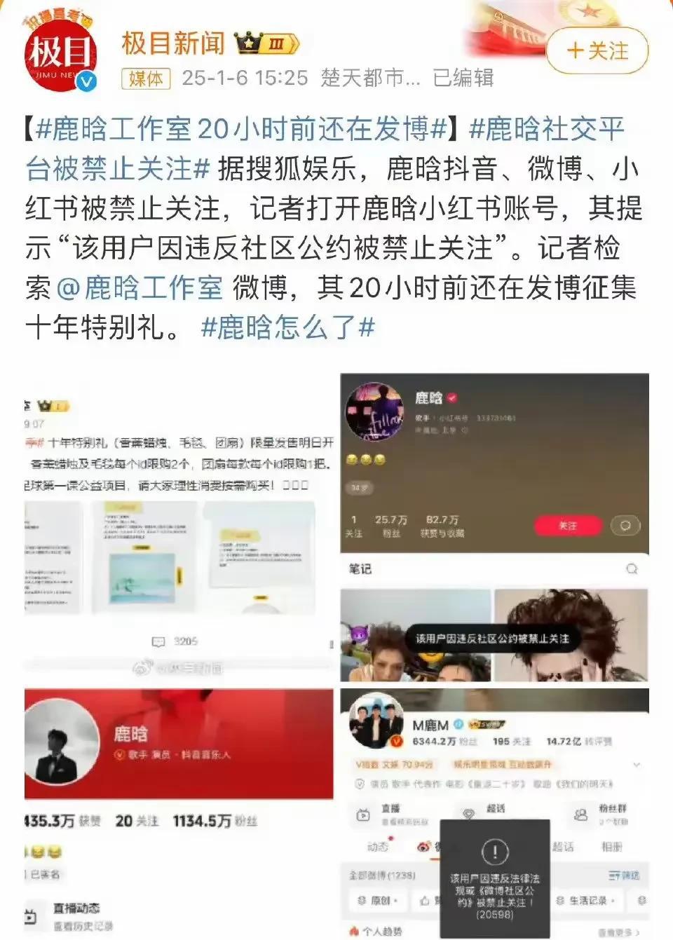 全网禁关后鹿晗再遭重!新歌不让安利,杂志暂停发售,还退出五哈