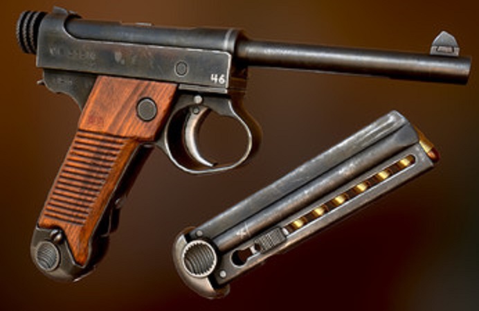 而另外一款手枪:日本的南部十四式手枪,外观和德国鲁格P08十分相似。