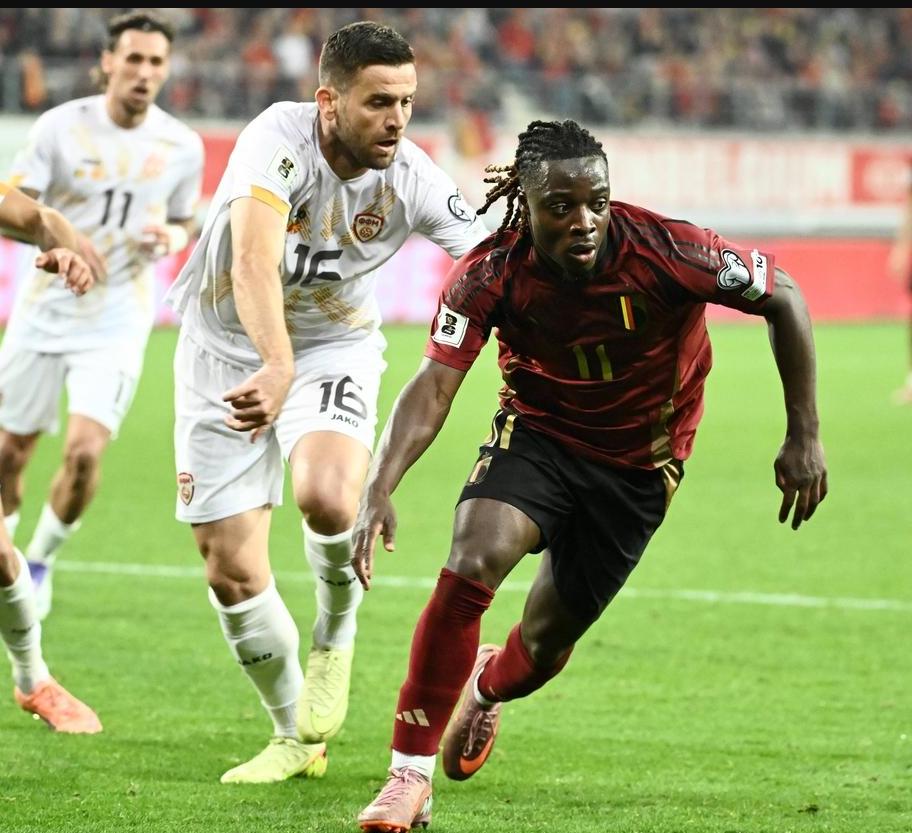 比利时与北马其顿的对决中,欧洲红魔虽掌控场上节奏,多次发动猛攻却未能转化为进球。德克伊珀一度破门,但因队友越位被判无效。北马其顿凭借坚韧的防守顶住压力,最终双方互交白卷。