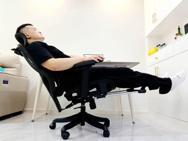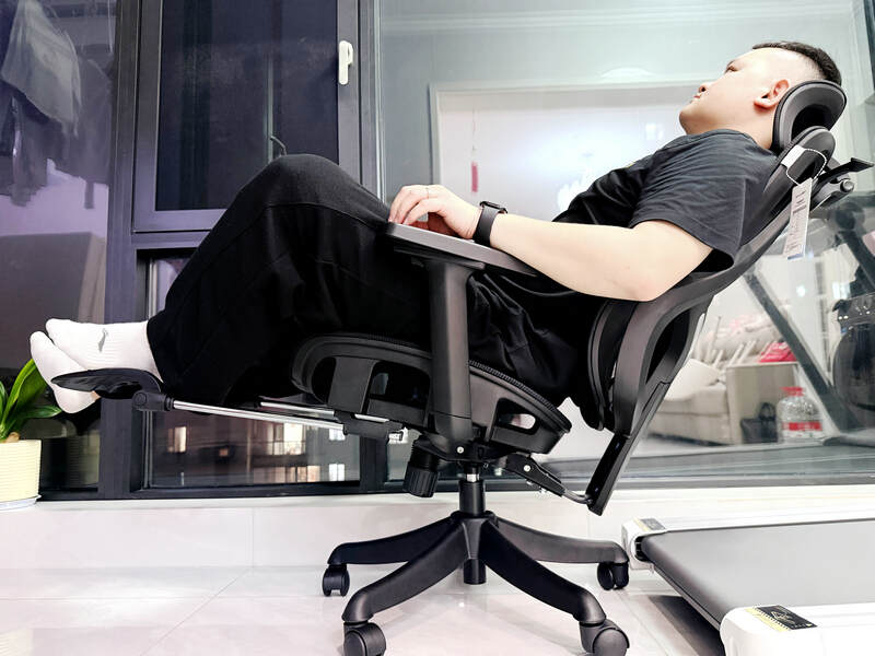 底盘的后仰角度最大可达 145°,搭配隐藏式可伸缩腿托,工作之余小憩之时可以让全身都能得到很好的放松。加上第六代重力联动底盘,将新颖的机械传导技术融合进富有肌肉感的安全底盘中,能够根据不同的体型和体重自动调节后仰反馈力度。不同的适用人群都能在座椅上找到最适合自己的舒适坐姿。