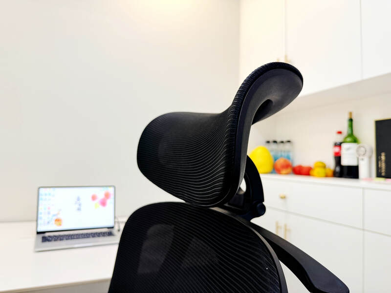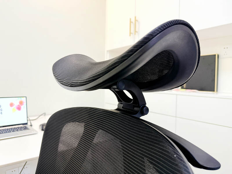 夏草木 Fit2 人体工学椅采用了独立分体式的头枕设计,能够根据不同的头部角度进行多方位的调节以完成更好的支撑,而且头枕设计也是中间凹两边凸的,可以更好、更舒适的支撑头部和颈部。