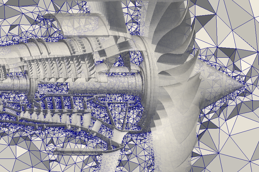 TetGen生成的罗斯-罗伊斯Trent900涡轮喷气发动机的四面体网格剖分。
