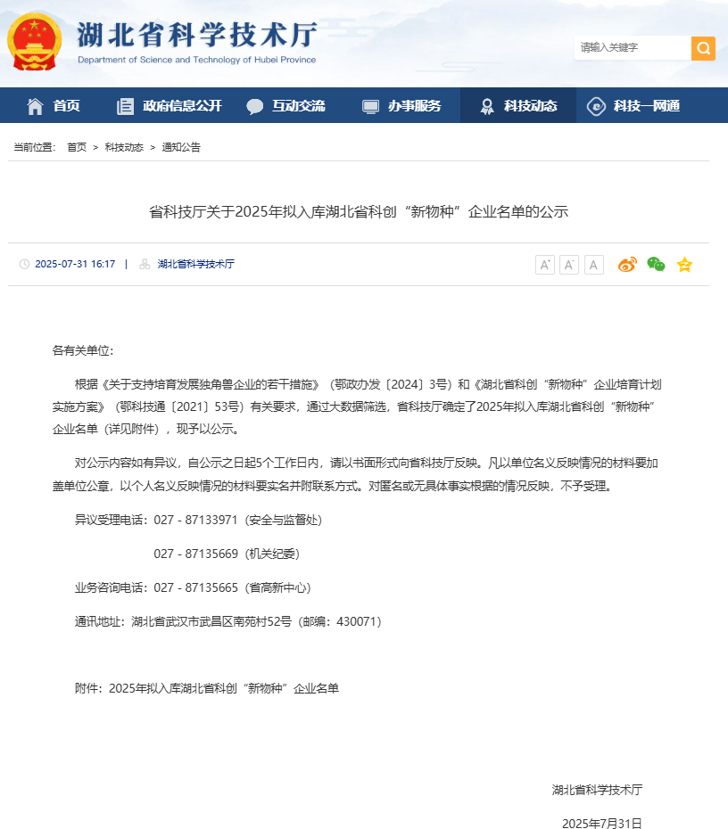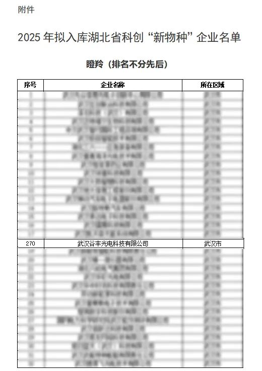 近日,湖北省科技厅公示《2025年拟入库湖北省科创“新物种”企业名单》,武汉谷丰光电科技有限公司凭借强劲的创新实力与成长潜力入选“瞪羚企业”,成为全省重点培育的高科技企业新锐力量。