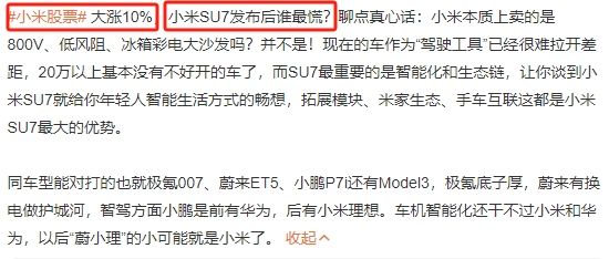 虽然有网友表示,小米SU7这个价格定位,这是叫座不叫卖,转个吆喝罢了!然而,大家再看看微博热搜榜,就可以知道,小米昨晚的发布会成功了。你下单SU7了吗?