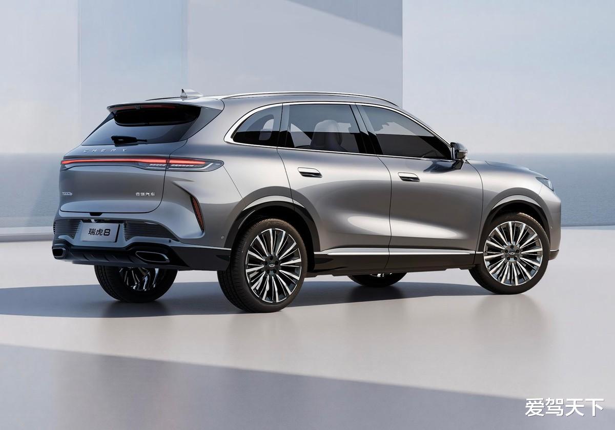 车身侧面,全新瑞虎8也有了较大的改动,车尾采用了更运动的溜背式造型,机械式门把手换成半隐藏式造型,取消了侧裙大面积镀铬饰件,整个后翼子板的肌肉线条更加饱满,搭配密辐式轮毂造型,看起来更加轻盈,甚至还多了几分年轻时尚感。车尾采用了时下最流行的贯穿式尾灯,牌照位置被移到后包围处,造型更加协调。