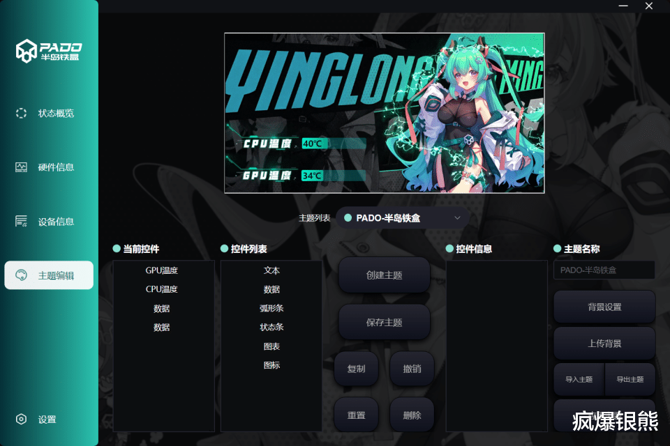 搭配半岛铁盒的软件,可以自己编辑各种喜欢的主题,状态信息,硬件信息都可以自己搭配。