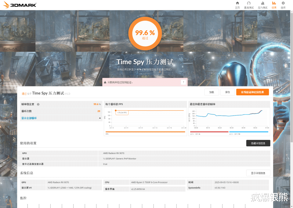 稳定性方面,得益于九州风神PR750G猿宇宙750W金牌电源的加持,3DMARK跑分通过率99.6%。
