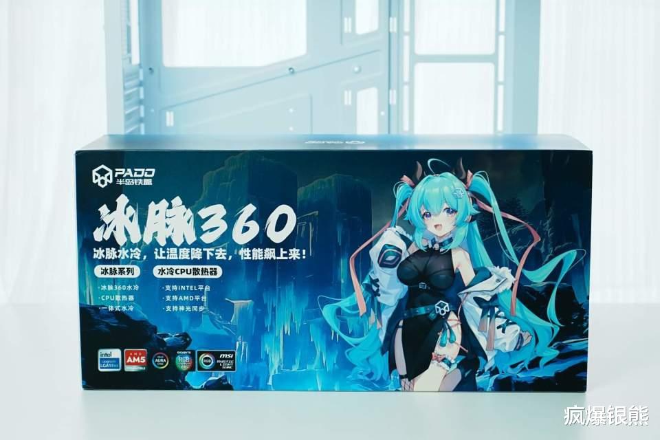 半岛铁盒冰脉360不带显示屏(主机已经带了),所以价格相当划算,当然自身素质也不差。整体包装非常二次元,我很喜欢。