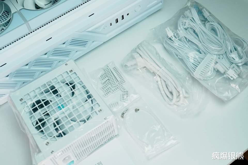 这款电源有白色和黑色款,配件上官方也比较统一都是白色,除了全模组电源外,还标配1根24Pin主板供电线、2根4+4Pin CPU供电线、2根6+2Pin PCI-E供电线、1根PCIe 12V-2x6显卡供电线、1根SATA供电线。另外其还送了很多理线器,这点很不错。