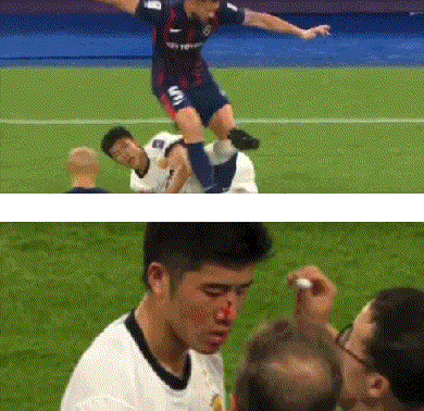 过了5分钟,李圣龙被对方球员的鞋子刮到,随后脸部出血,裁判没有表示。