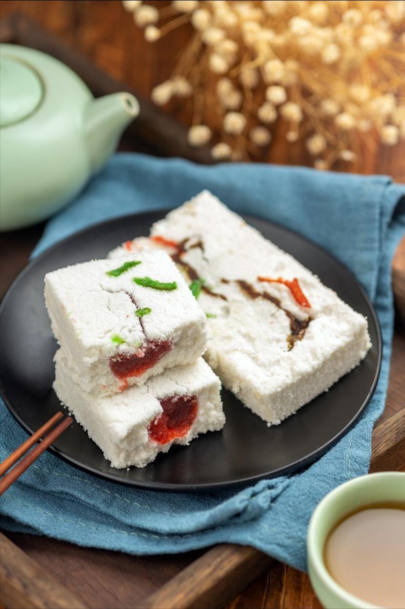 糕干自然回弹,切开四十块,软糯中带着筋道。