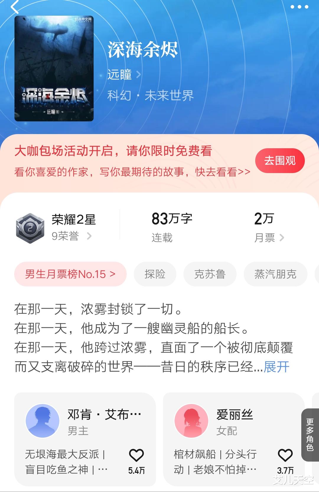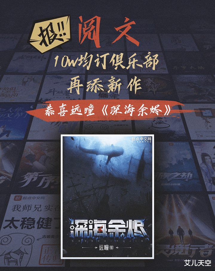 今天下午快一点的时候,阅文作家助手官方公众号发布了远瞳新书《深海余烬》突破10万均订的消息。