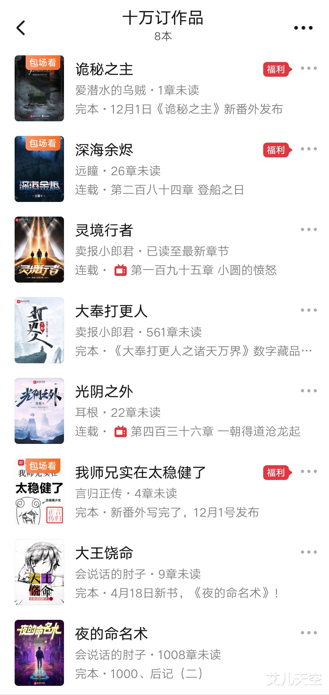 而除了这些,有些完结多年的老作品指不定哪天也可能就破了十万订。比如耳根今年九月底的时候说《一念永恒》九万订,未来磨到十万,也不是没希望,更不要说《斗破苍穹》那些有动画加持的作品了。