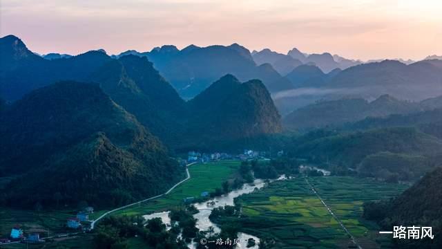 来到大新明仕田园,欣赏《花千骨》的“长留仙境”千姿百态的喀斯特峰林和田园风光交相辉映明仕河是灵动的点缀经过鱼鳞坝,走过那里稻田拥抱宁静日子的诗意美好一切都刚刚好