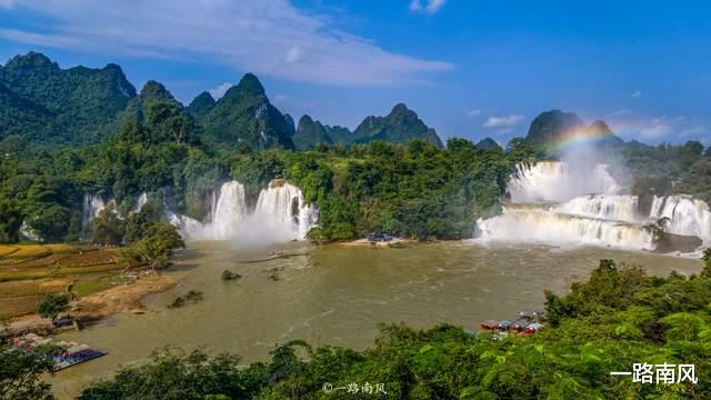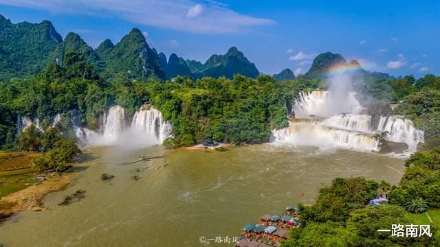 走进德天跨国瀑布景区起伏的喀斯特峰林和壮观的大瀑布让人产生进入仙境的错觉这是亚洲最大的跨国瀑布和越南板约瀑布组成“仙瀑”矩阵分上、中、下三条观光路线此刻 ,《花千骨》的画面在脑海上映