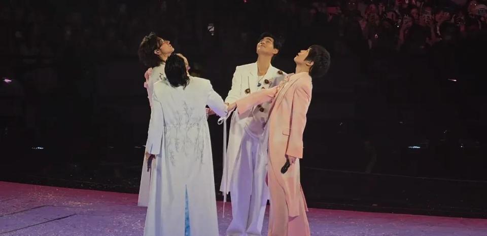 他特意使用“暂时未能赴约”一词,为朱孝天未来的回归留下余地,同时强调自己献唱22场只为成全F3舞台的完整。 更令人动容的是,他与F3成员的互动——吴建豪跳下舞台搀扶,周渝民和言承旭先后亲吻其脸颊表达关切。 这些细节无意间消解了“替补者”的尴尬,反而构建出更具温度的情感联结。