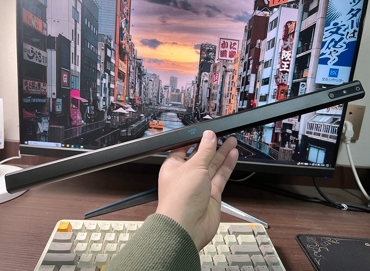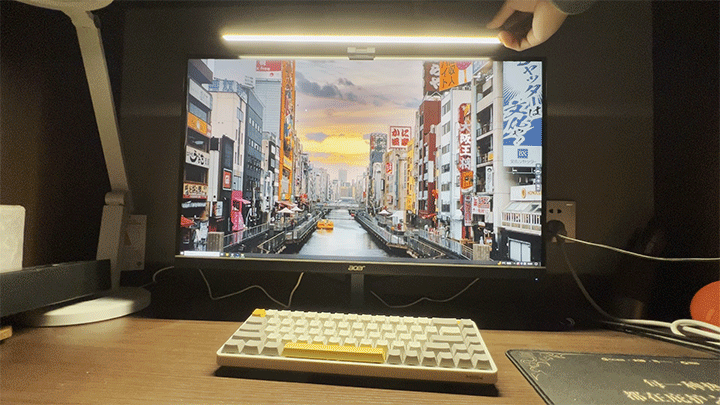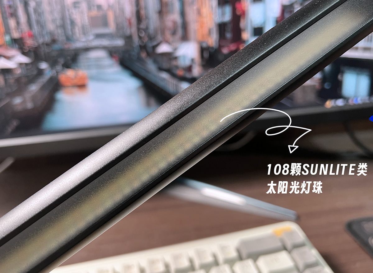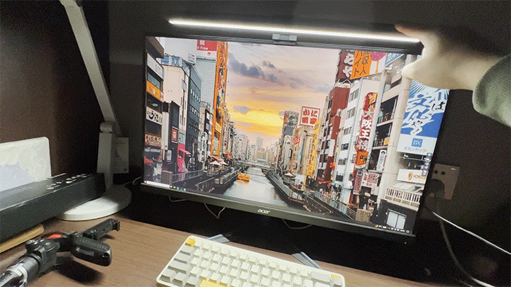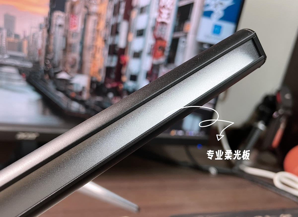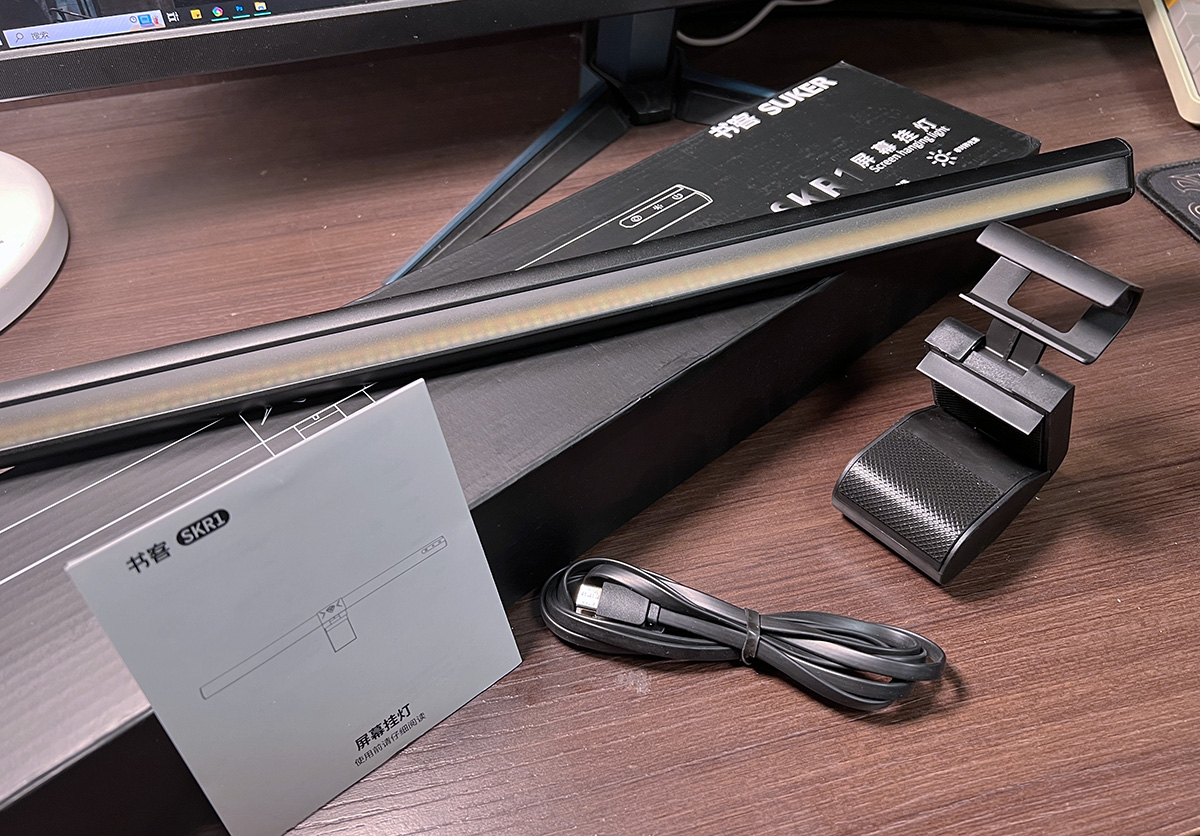 然后将屏幕灯架在屏幕上,连接上灯管后的Type-C口,就可以用了。