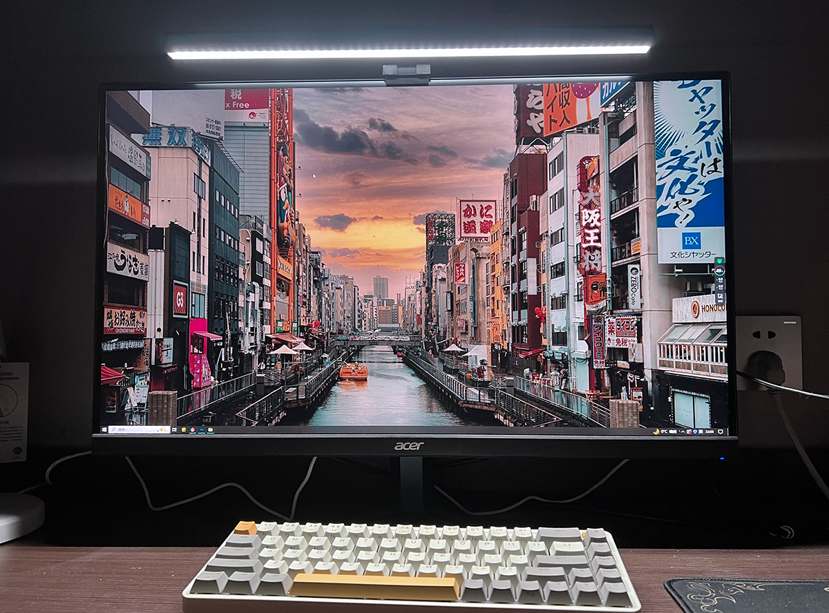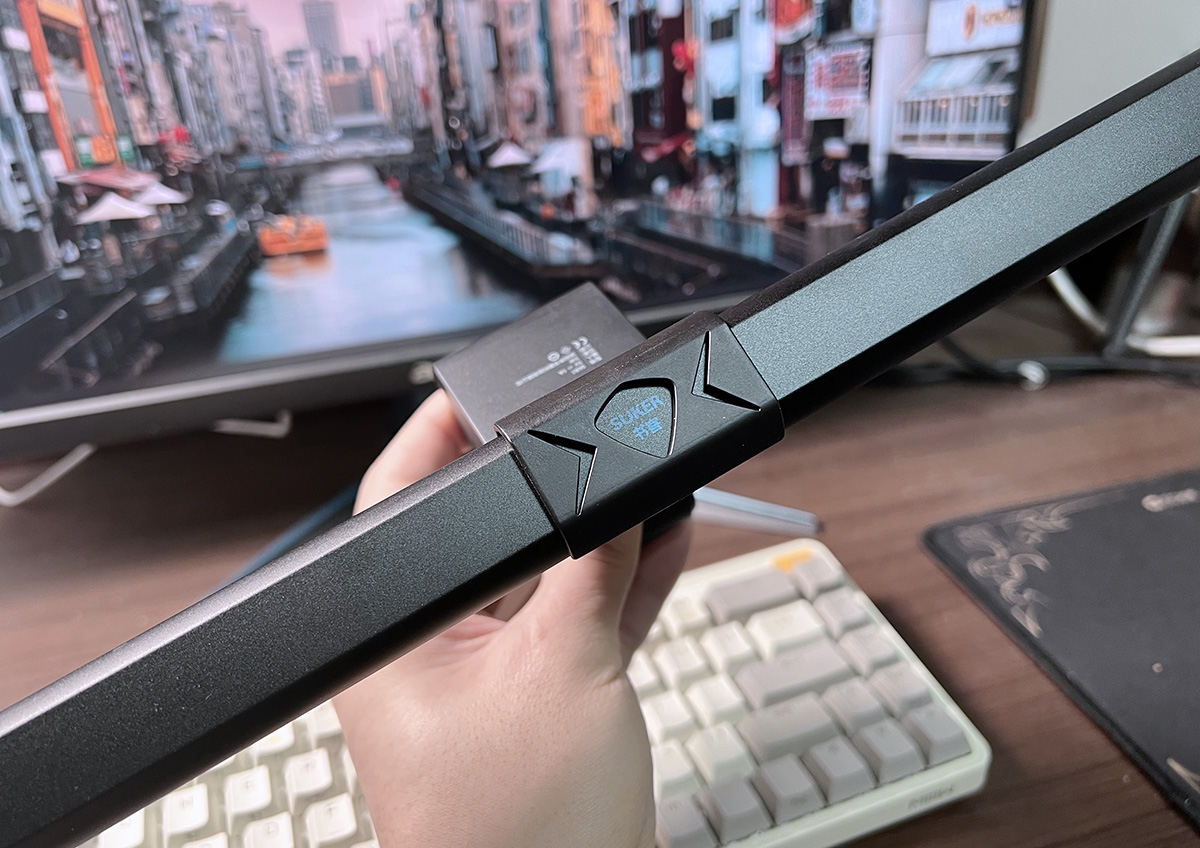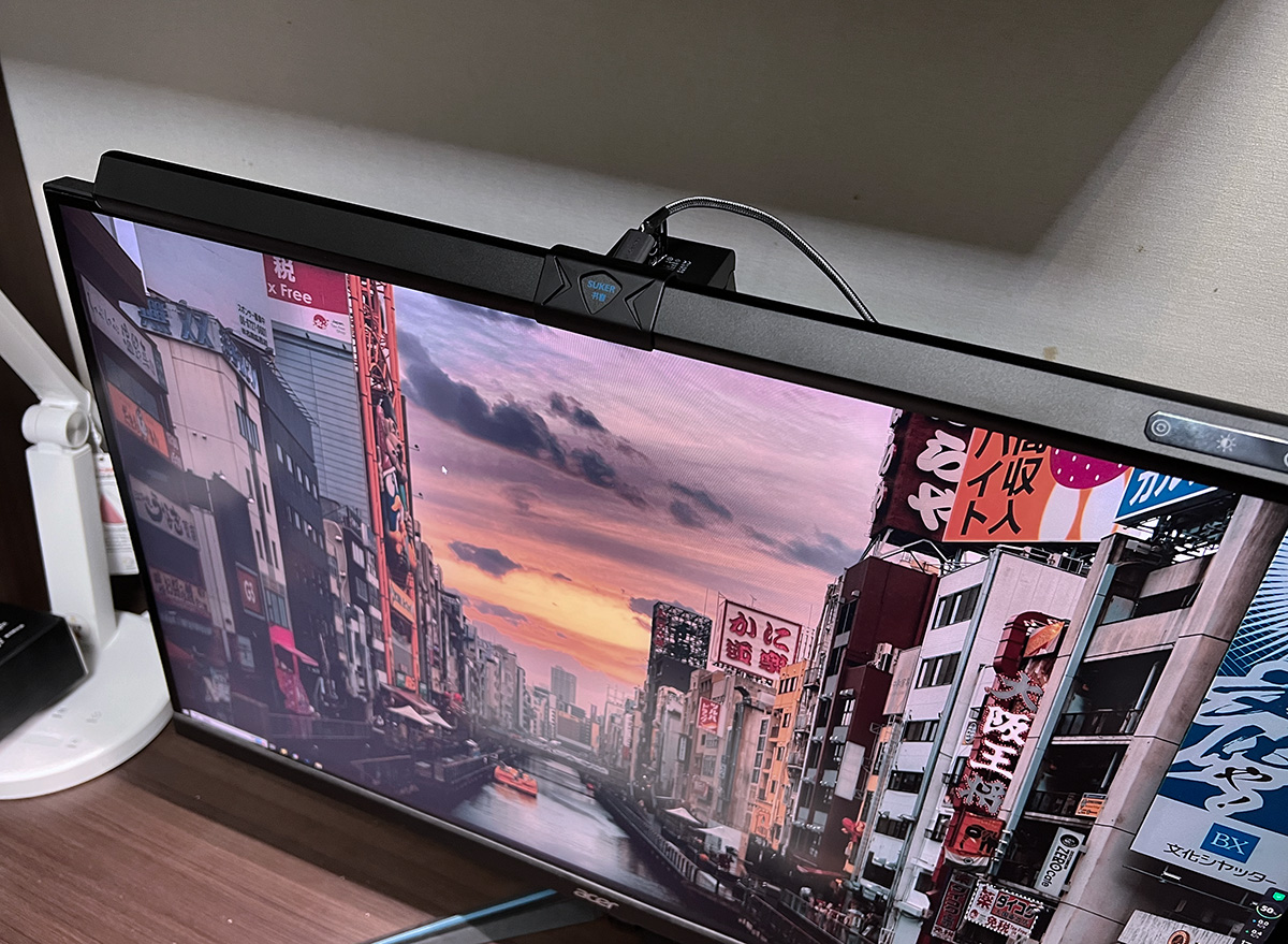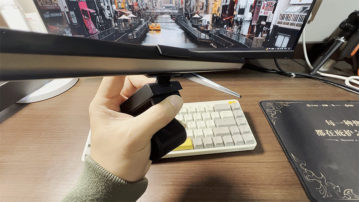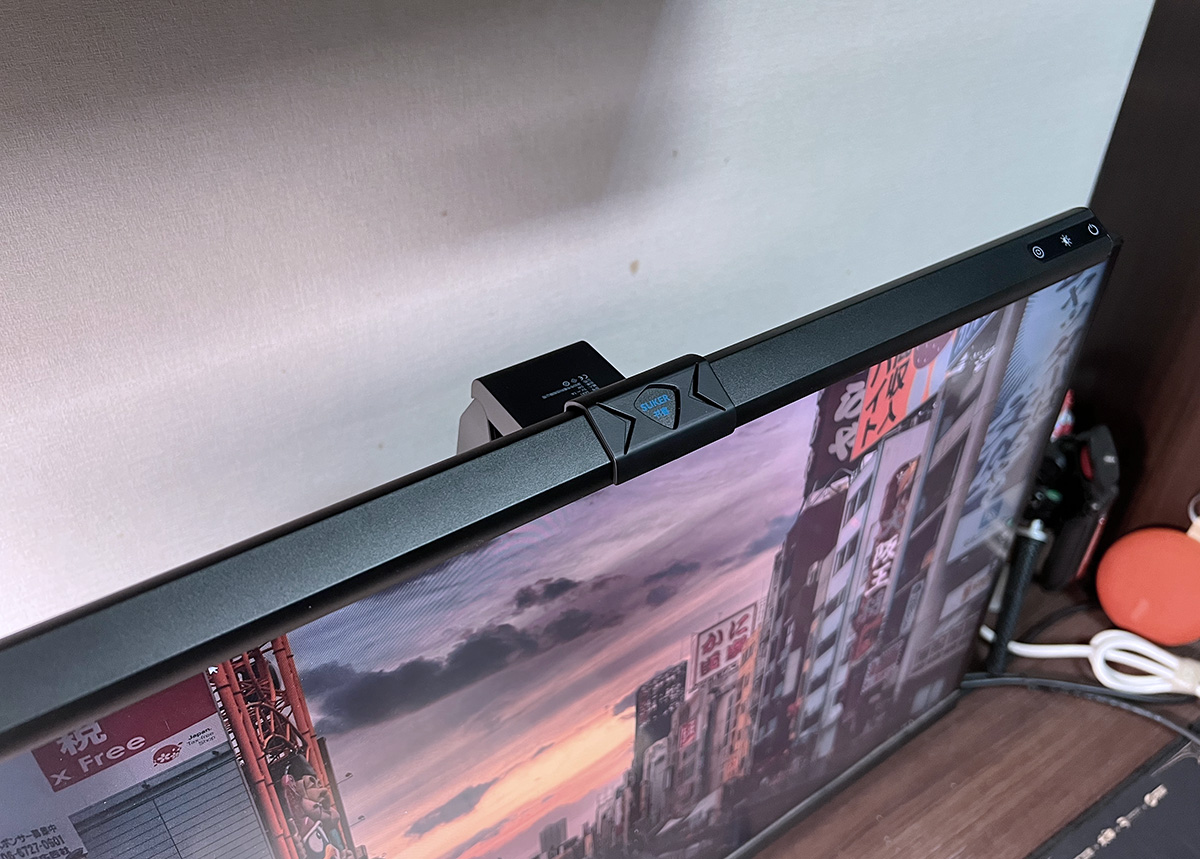 然后将屏幕灯架在屏幕上,连接上灯管后的Type-C口,就可以用了。