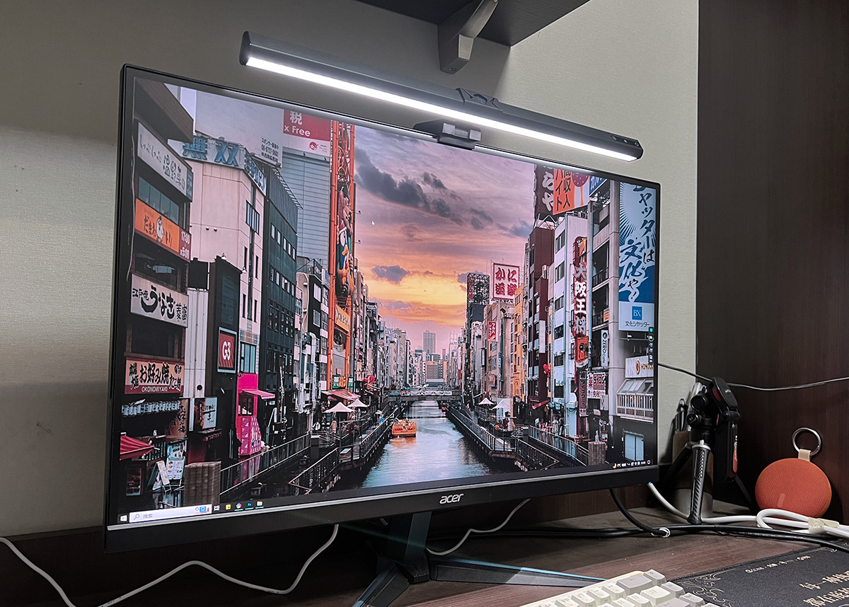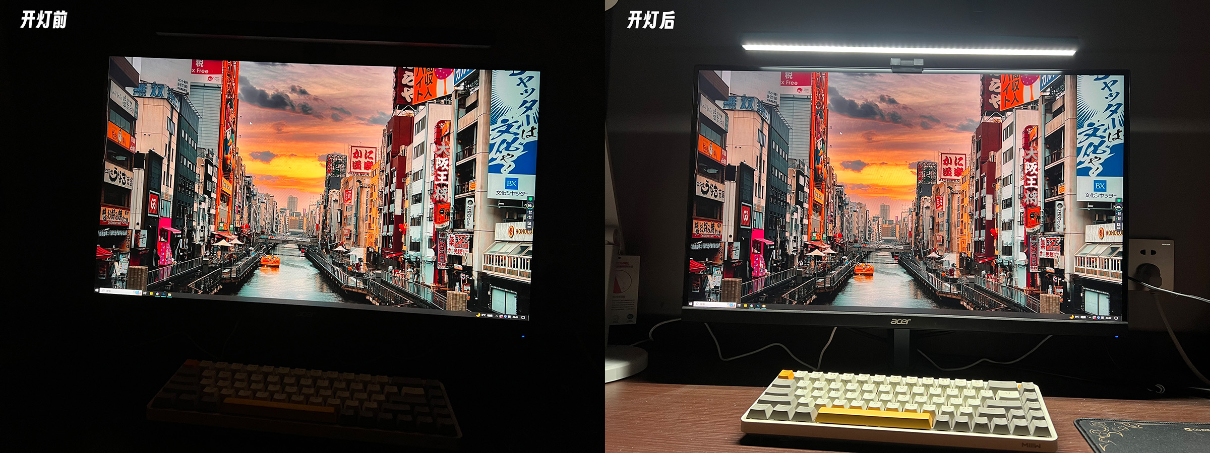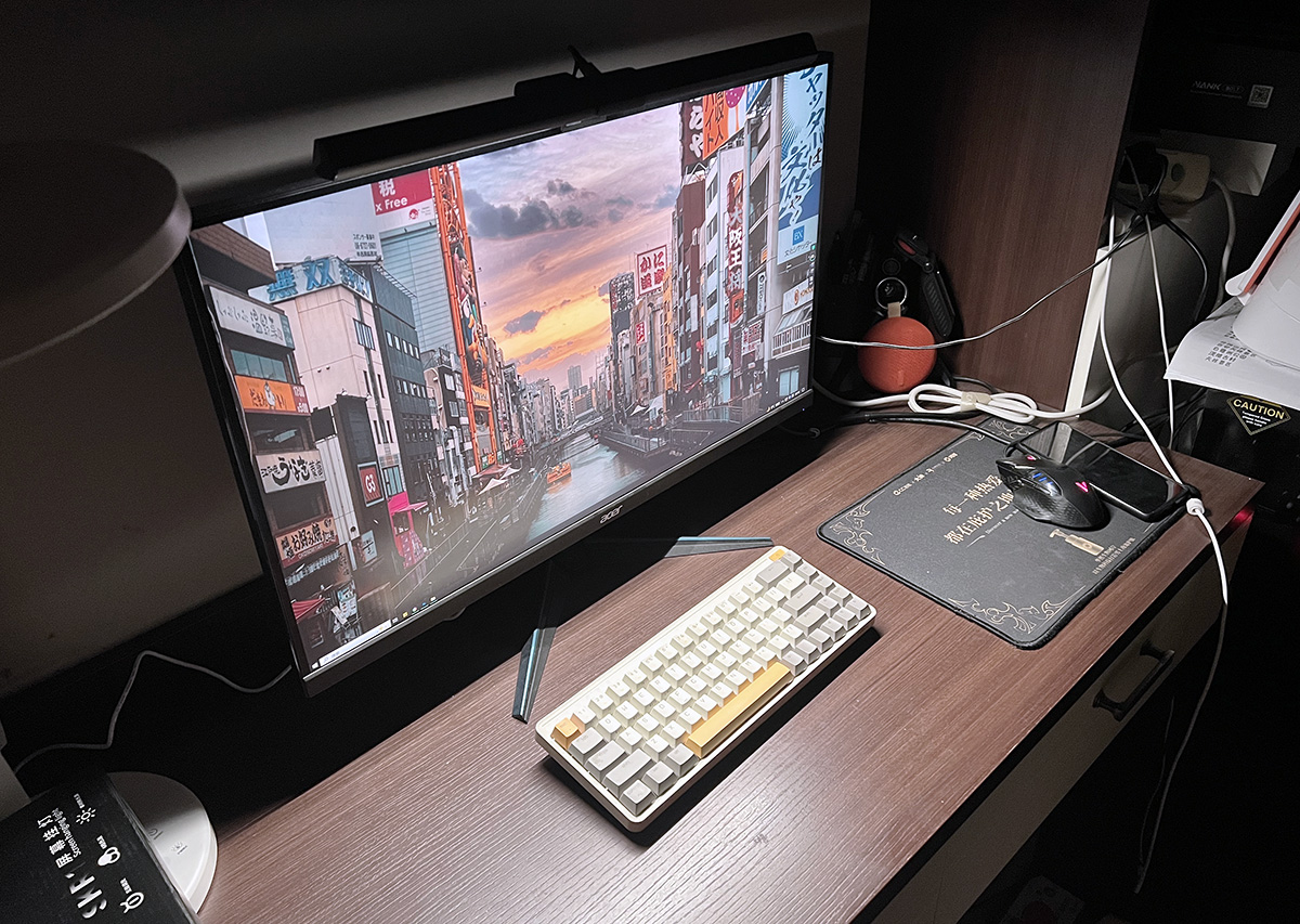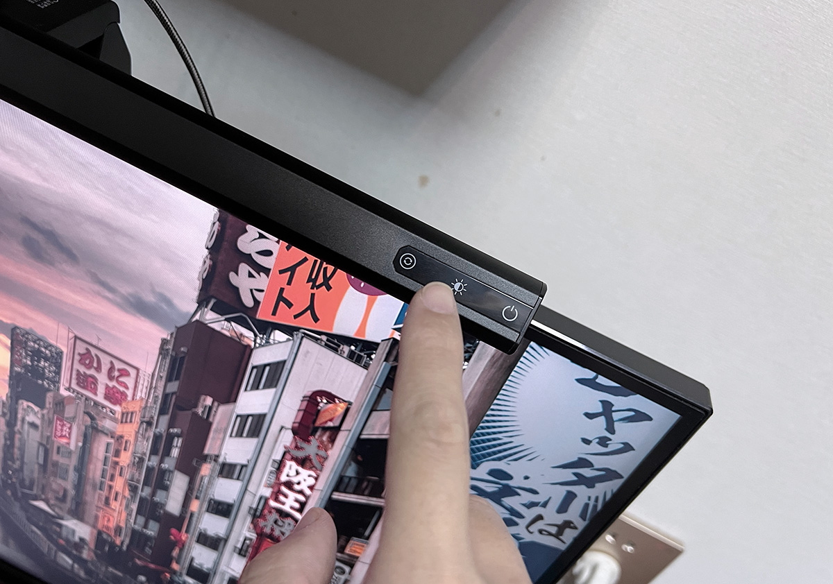 然后将屏幕灯架在屏幕上,连接上灯管后的Type-C口,就可以用了。