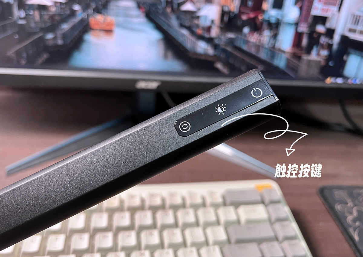 在灯管的右侧,有三个logo按键,从左到右,分别是亮度键、色温键以及电源开关键,轻轻触控就行。