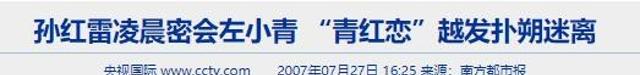 媒体爆料左小青多次夜宿孙红雷在北京的别墅,甚至有记者蹲守拍到清晨离开的画面。