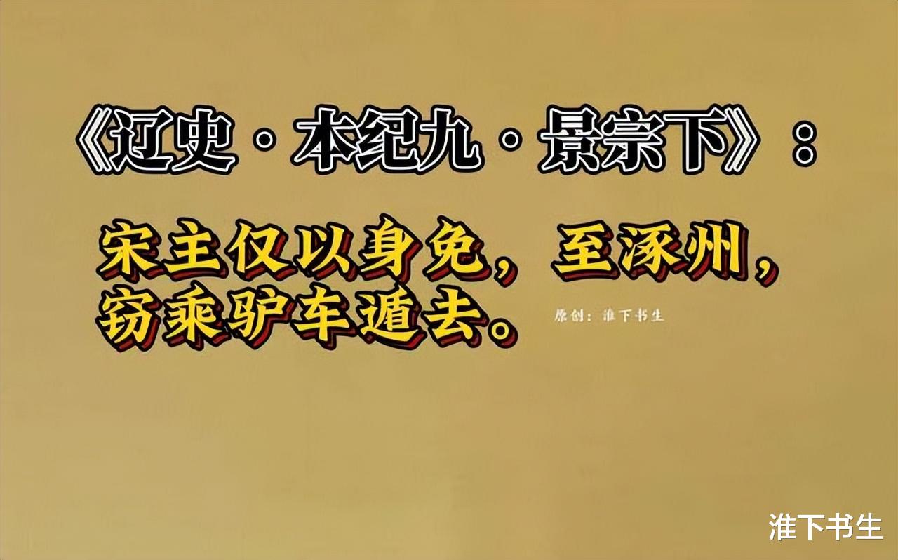 其次,根据《辽史·本纪九·景宗下》记载:“宋主仅以身免,至涿州,窃乘驴车遁去。”