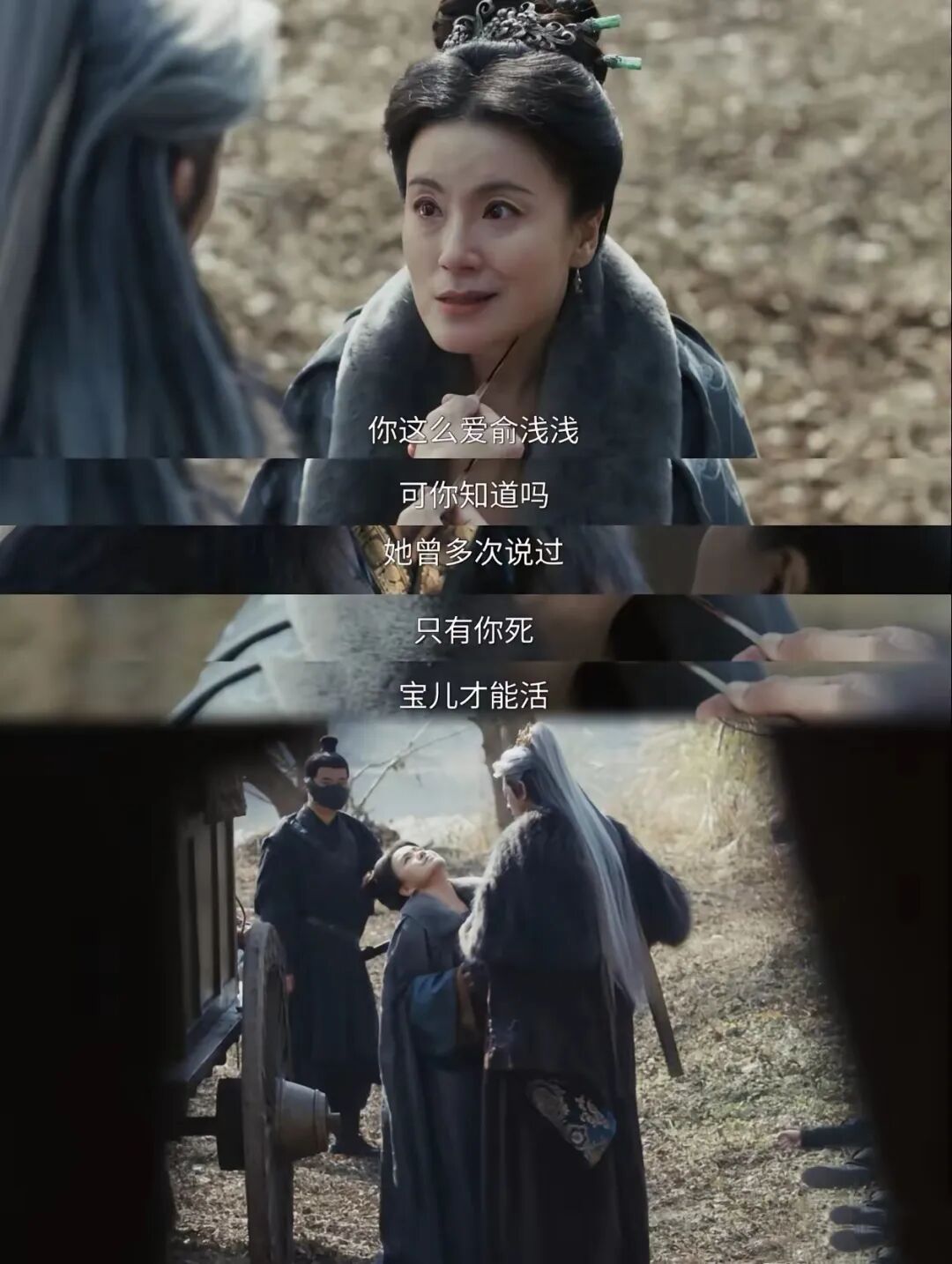 兰嬤刘为了让赵询带着去小便的俞宝儿赶紧逃离,大声呼叫“留得青山在”,并拔下发簪刺向自己亲手带大的齐旻。