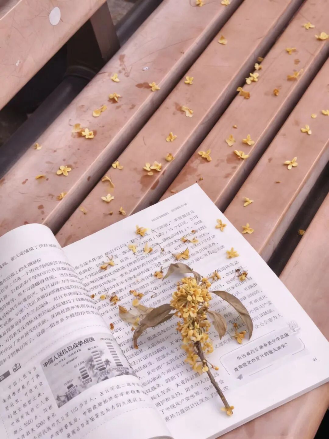 落在学子的书上