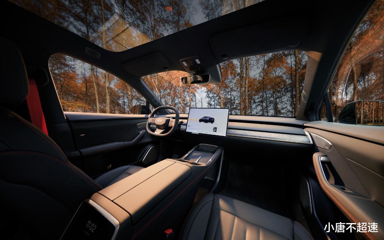 内饰部分以黑色为主体,采用雅黑皮革座椅并搭配木纹饰板,细节处通过橙色缝线及橙色安全带点缀,同时标配了后排右侧折叠桌板。车机系统也对应更新了专属显示模型。
