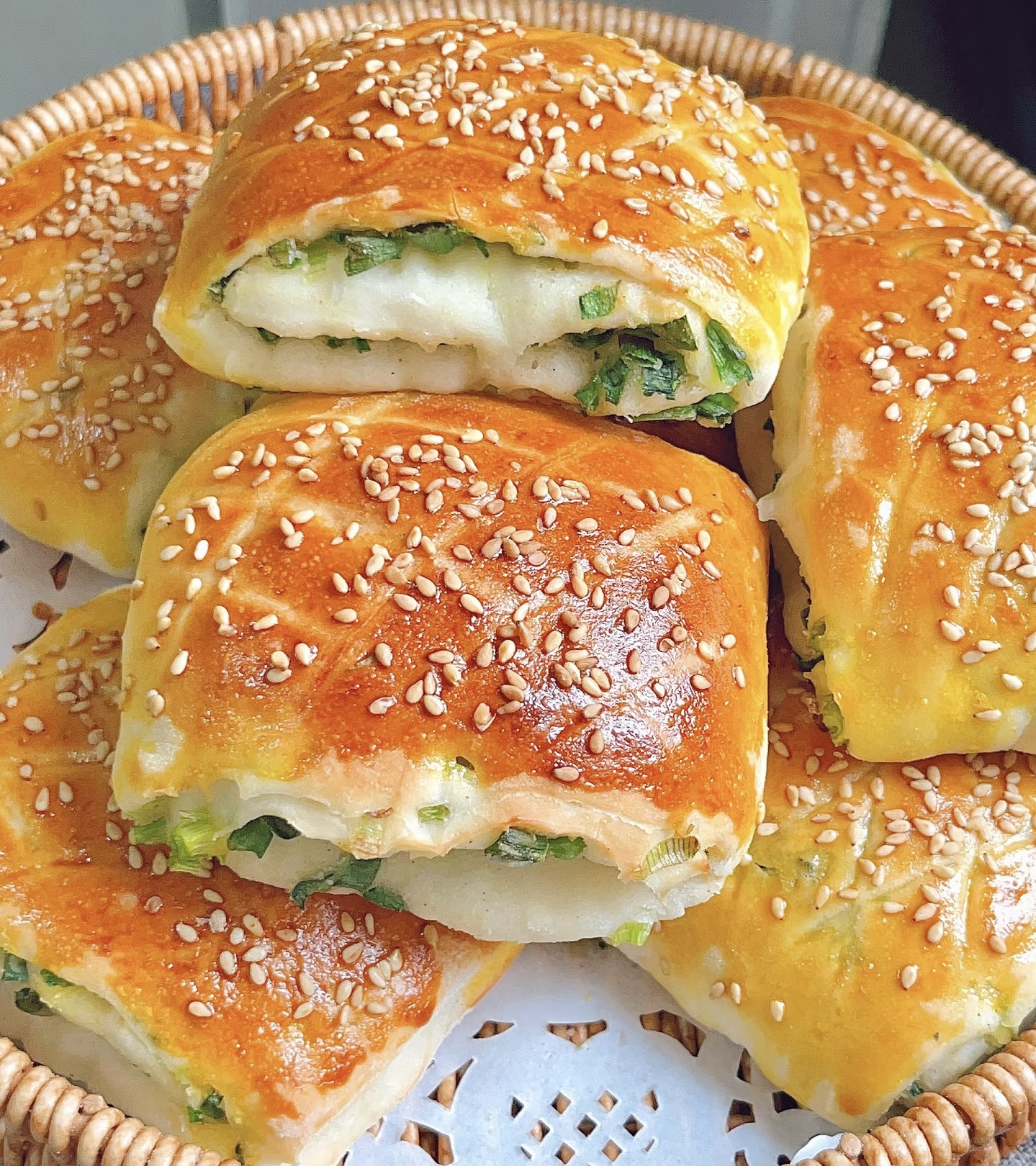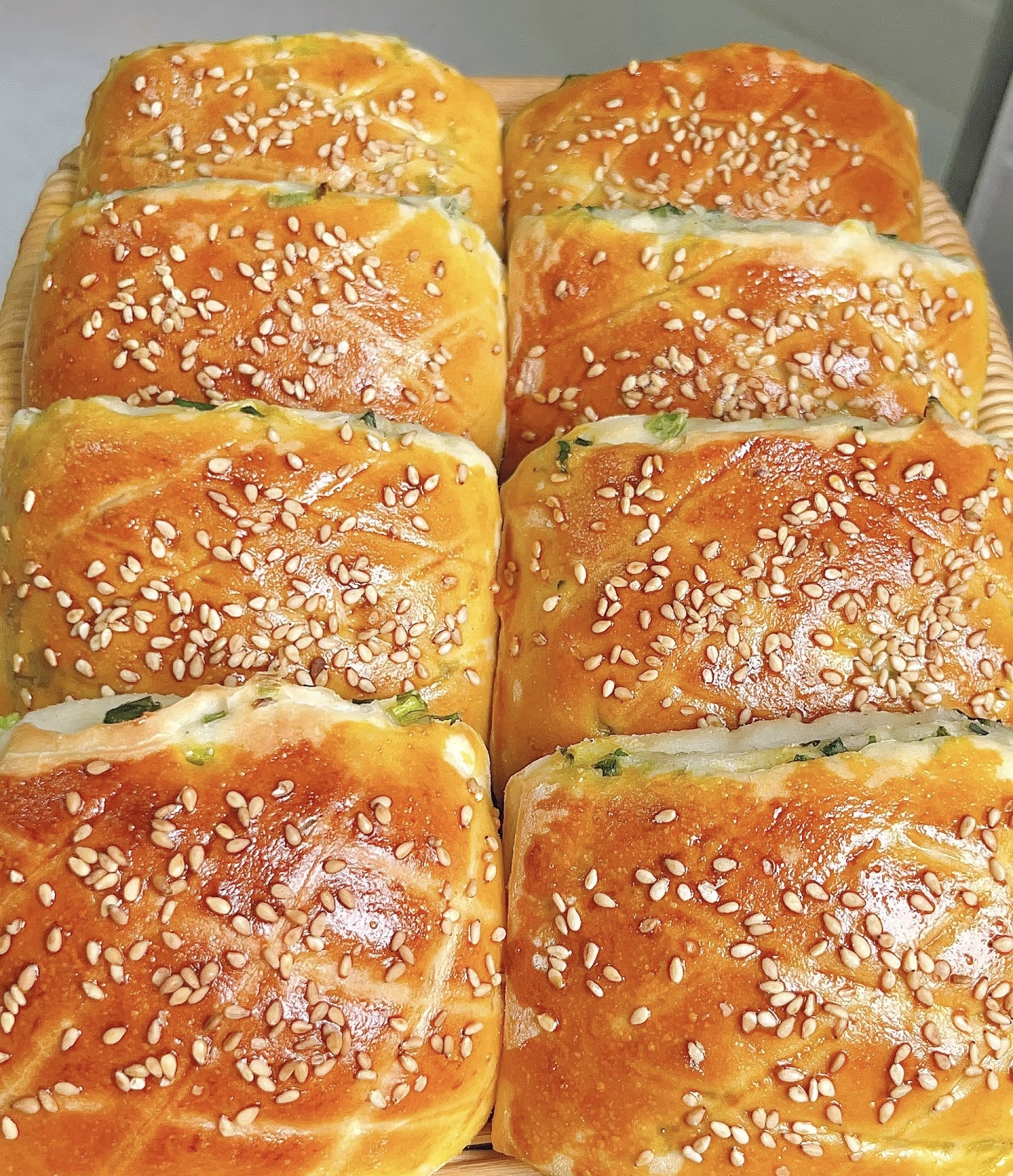•油酥一定要放凉后再涂抹,否则高温会烫熟面皮,影响口感;葱花尽量切细,烤的时候更容易出香,且不会戳破面皮。