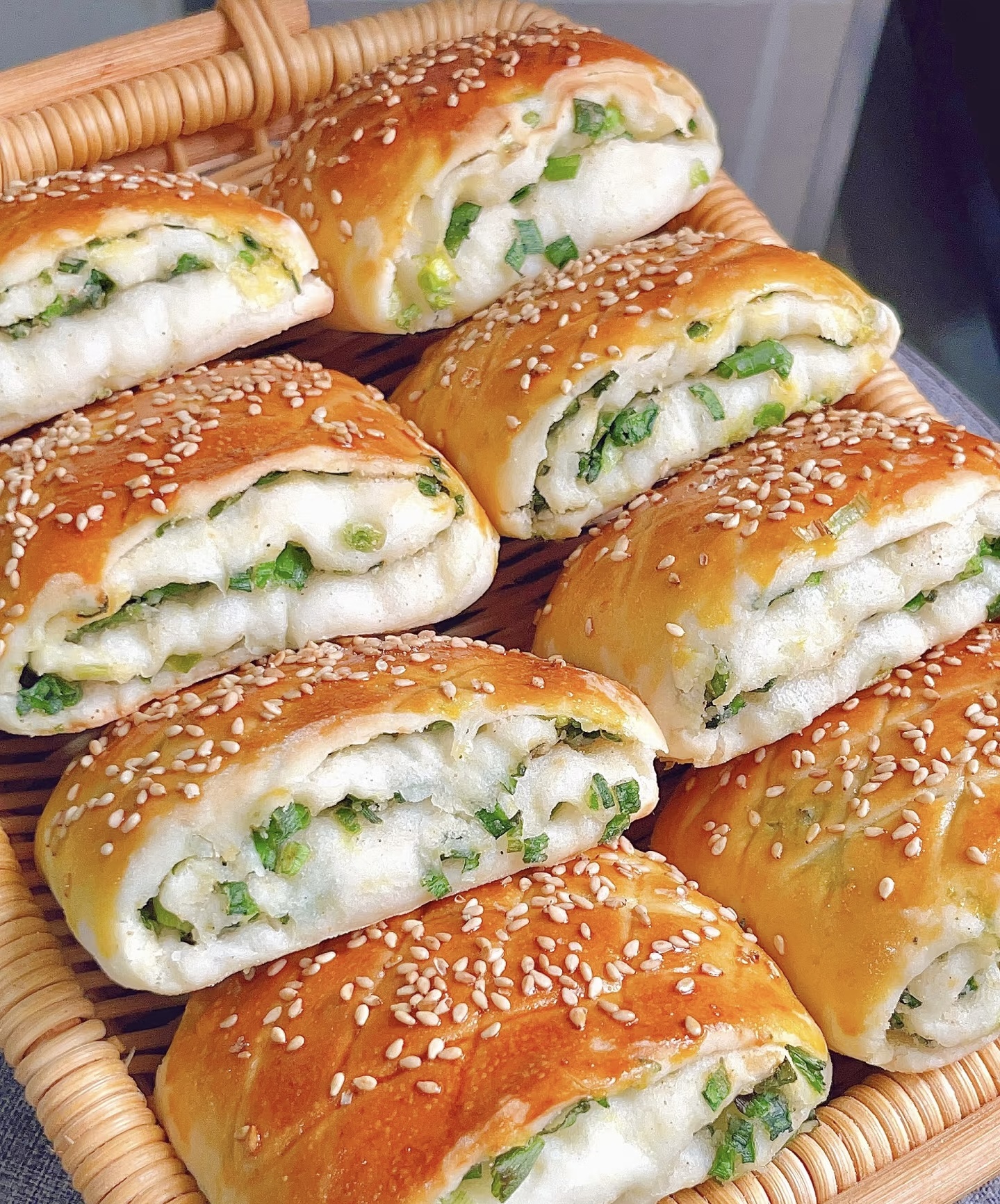 •辅料:小葱5-6根(洗净沥干,切成葱花)、白芝麻适量(表面装饰用)。
