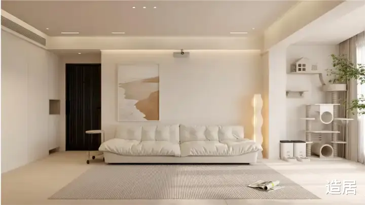所以每次给养宠家庭做设计时,造居君会多琢磨一层:如何在有限空间里平衡 “人的舒适” 与 “宠物的自由”呢?