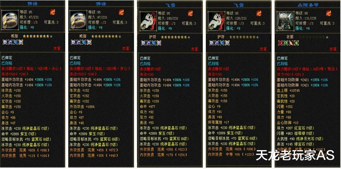 装备最大的亮点,就是除了衣服之外,每一件都加身法!