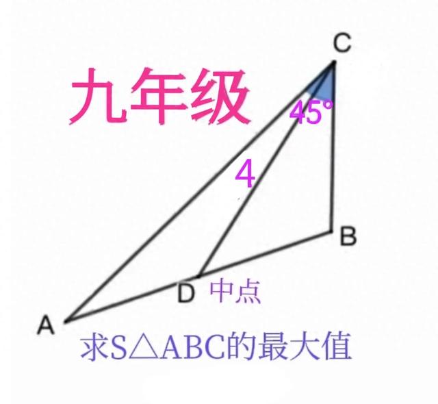 在△ABC中,∠ACB=45°,CD为AB上中线且CD=4,求三角形ABC面积的最大值。