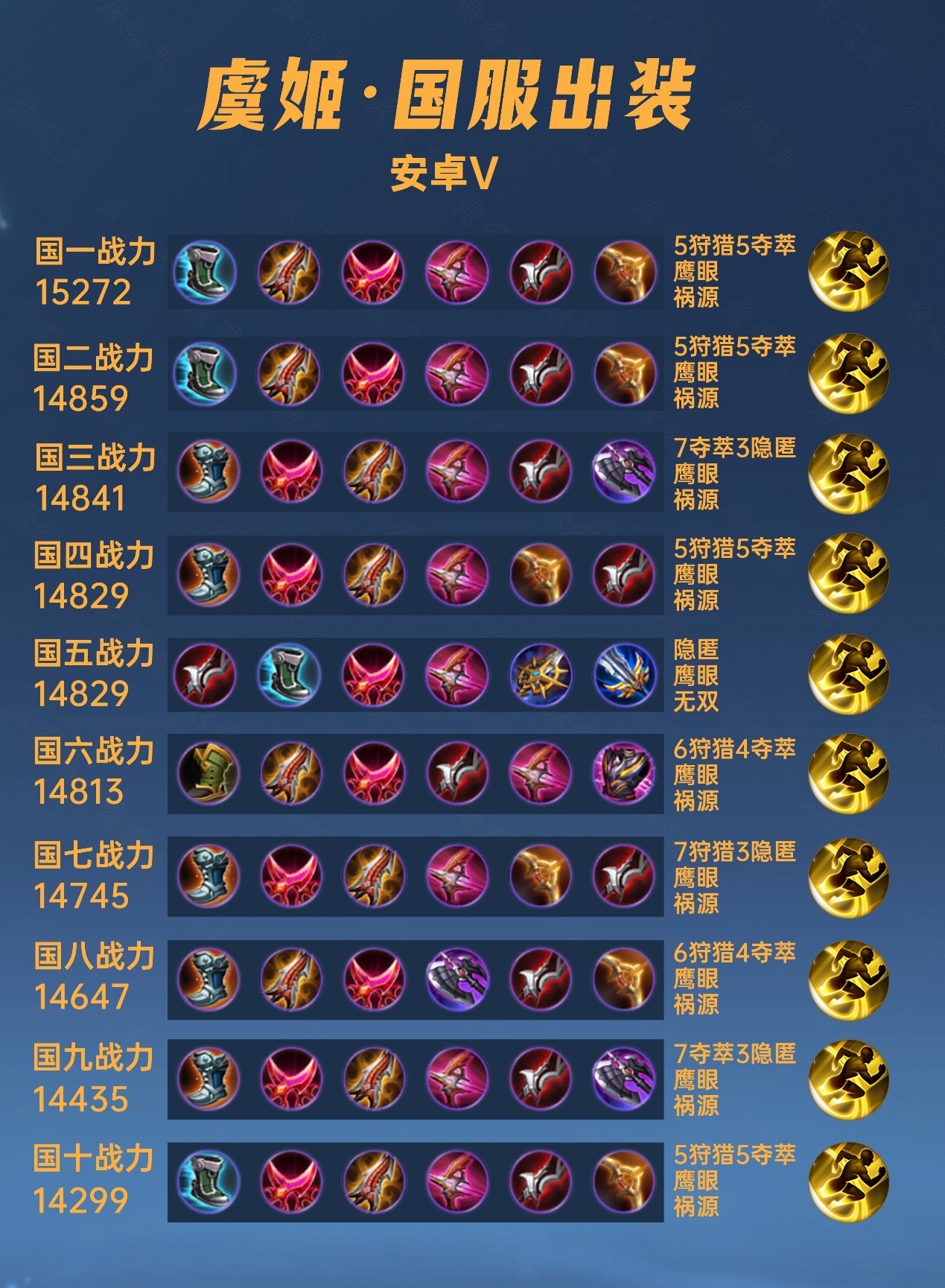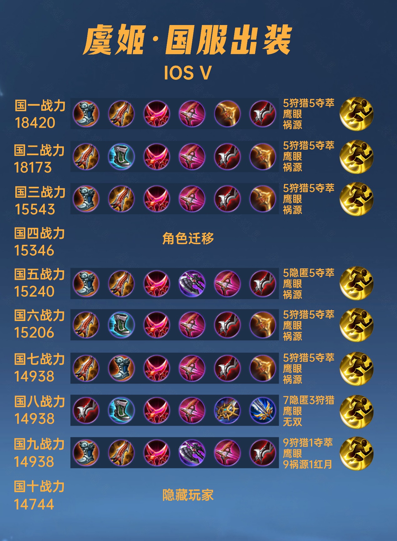 这篇文章我们来看一下40位国服虞姬的出装铭文,这个英雄自古以来就是骚套路比较多,这一次统计也发现各种出装流派都有。