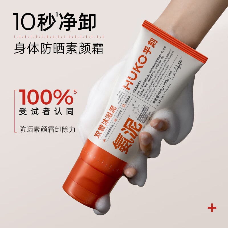 洗卸合一需求:优先选乎刻氨基酸白泥透净双管沐浴露,一步解决身体防晒/素颜霜清洁痛点
