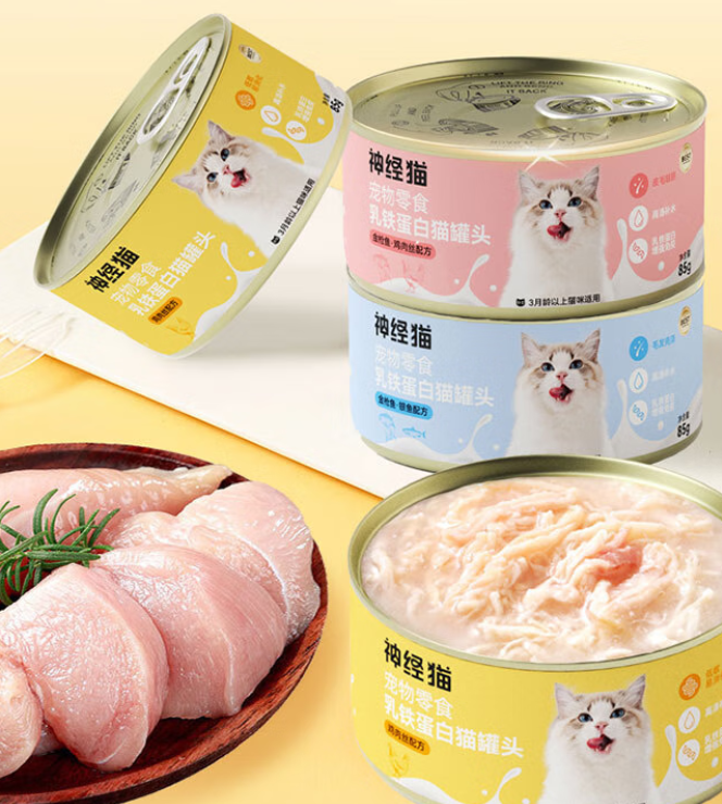 五种最好吃的主食罐头测评:神经猫算是专注猫咪生活的杂货品牌,有宠物用品、宠物服装、宠物食品、宠物药品、宠物保健品、宠物饲料等产品,还有软件开发、广告设计等业务。他家乳铁蛋白猫罐头有三种配方,分别是鸡肉丝、金枪鱼+鸡肉丝、金枪鱼+银鱼;原料由鸡胸肉/金枪鱼/银鱼、乳铁蛋白和水构成;采用八小时文火慢熬的工艺锁鲜、杀菌,汤汁浓郁。单罐85克,方便猫咪一次性食用完。