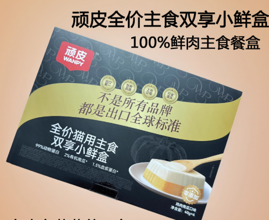 五种最好吃的主食罐头测评:顽皮是中宠旗下创立时间较早的宠物品牌,其开创了中国营养肉干类宠物零食这一全新领域,产品已经覆盖了宠物零食、宠物湿粮、宠物干粮、宠物齿骨等宠物食品全品类,并在全球多个国家销售。他家全价猫用主食双享小鲜盒有鸡肉南瓜、鸡肉甜菜和鸡肉羽衣甘蓝三种口味,甄选鸡胸肉为主要原料,并添加了有机果蔬粉,开罐有肉香和果蔬清香;每罐还含有喷雾干燥鸭血浆蛋白粉、全脂羊乳粉、鱼油、山药粉和豌豆纤维,原料种类丰富。每盒80克,外包装色彩鲜明,不同颜色对应不同口味,便于我们快速区分和选择。