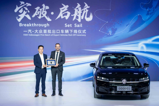 9月23日,一汽-大众在长春基地举行首批出口车辆下线仪式,554辆迈腾、速腾将于9月28日从上海港发出,11月份在中东上市。长春市委副书记、市长顾刚,中国一汽总经理、党委副书记刘亦功,副总经理兼一汽-大众总经理陈彬,大众汽车品牌国际销售高级副总裁Michael Mayer,大众汽车集团(中国)销售与售后副总裁Marcus Butros,大众汽车品牌中东总经理Matthias Ziegler,一汽-大众党委班子及经管会成员,海外客户代表等共同出席仪式,见证这一具有里程碑意义的时刻。