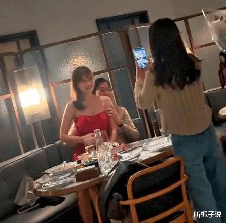 马清铿当天身着浅色的高领毛衣,因为财富自由,所以打扮十分年轻潮流。女友穿着抹胸的红色裙子,在餐厅灯光的氛围下,也抑制不住内心的欲望。