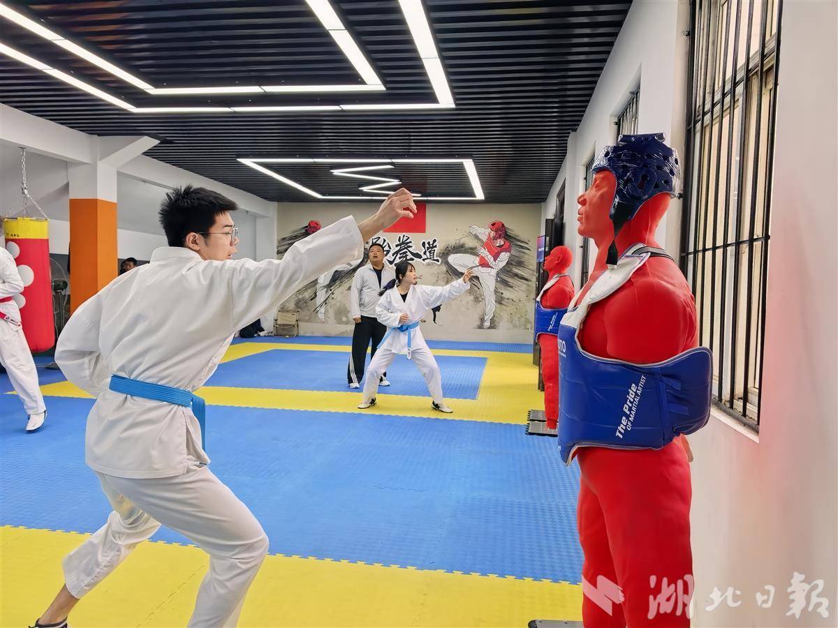在湖北建院,张艺蓓学的是建筑设计,汤佳鑫读的是工程造价。专业课程不轻松,训练更不能落下。每天下午课后,他们换上道服奔向训练馆,周末、寒暑假几乎“泡”在道场里。