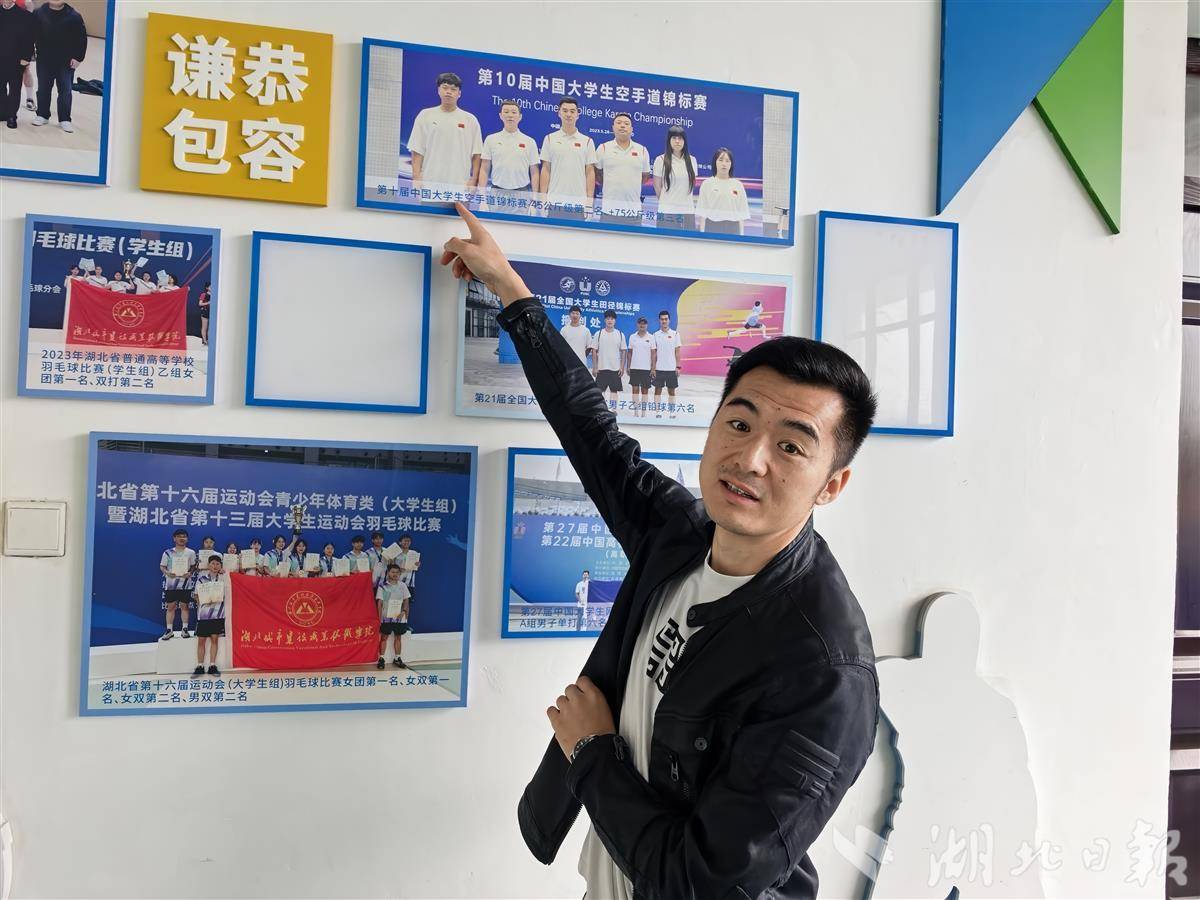 “张艺蓓在2024年作为主力队员参加比赛,获得了团体冠军,2025年再次参赛,不仅获得了团体冠军,还连克8名对手,一举夺得61公斤级的个人项目冠军……”韩健指着照片中间的张艺蓓,兴奋地向湖北日报全媒记者介绍。