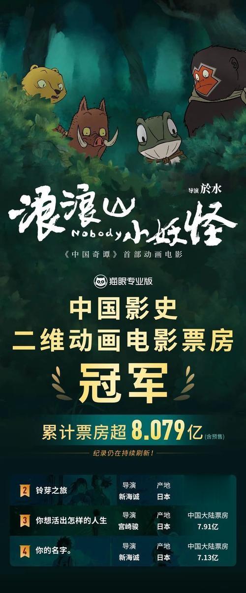 《浪浪山小妖怪》票房破10亿,成为国产二维动画电影冠军。