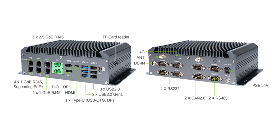 丰富接口适配:配备 RS485、CAN、HDMI™、LVDS、USB、网口、DI、DO 等多样 I/O 接口,能满足多设备连接需求,为机器人功能扩展与系统集成提供便利。
