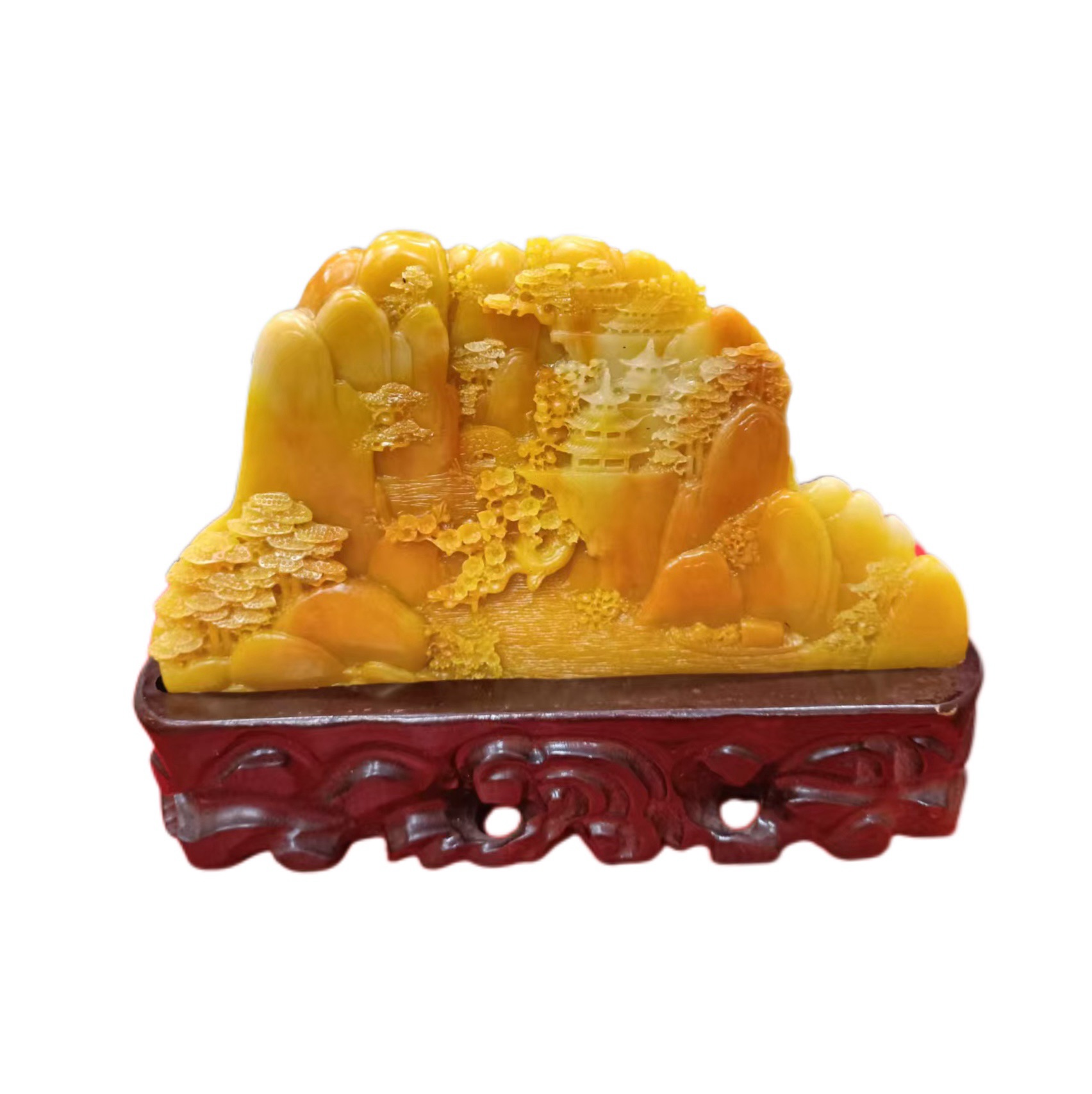 (三)收藏价值:时光沉淀,价值永恒从收藏角度而言,田黄石本身就具备极高的价值,其稀缺性与不可再生性让它成为 “软黄金”,是众多藏家梦寐以求的珍品。而在此基础上,加上如此精湛的山水雕刻工艺,更是让这方摆件的价值如虎添翼。它不仅是一件艺术品,更是一件具有历史文化价值与投资价值的藏品。随着时间的推移,它所承载的文化内涵与艺术价值,会愈发凸显,成为时光沉淀下的永恒经典,见证着岁月的变迁,也为收藏者带来精神与物质的双重收获。