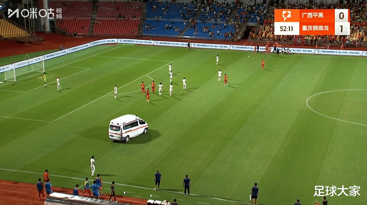 说起来这两队跟广州队都颇有渊源,双方阵中都有数名前广州队球员。比赛开始后客场利用主队一次乌龙球率先领先,上半场双方踢成0-1,比赛平淡没有看点。到了下半场却风云突变,期间因为球员的拼抢激烈,导致救护车两次开进球场。