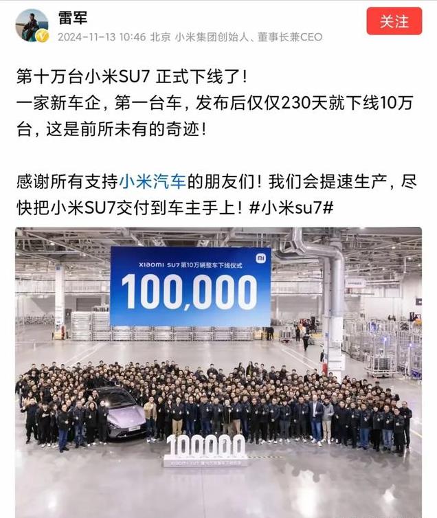 3月底才发布,但到11月中旬,已经交付了10万台,随着产能不断提高,小米SU7每个月能交付2万台左右,这个成绩在新能源轿车,也是现象级的存在。